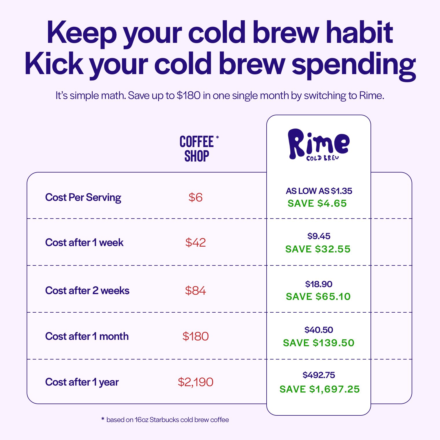 Rime Cold Brew waits in your fridge. Delicious and ready for you any time.